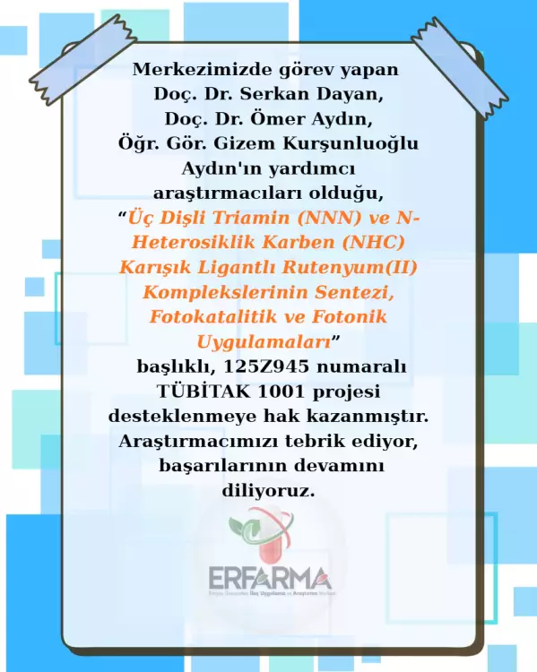 Erfarma İlaç Uygulama ve Araştırma Merkezi Araştırmacılarının Tübitak 1001 Başarısı.